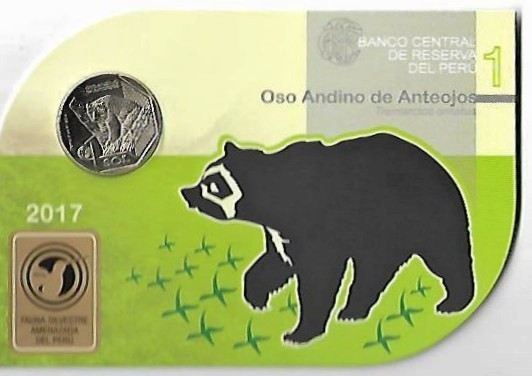 El Banco Central de Reserva del Perú (BCR) pone en circulación desde el 19 de julio de 2017, la primera moneda de la nueva Serie Numismática “Fauna Silvestre Amenazada del Perú”, alusiva al Oso Andino de Anteojos.